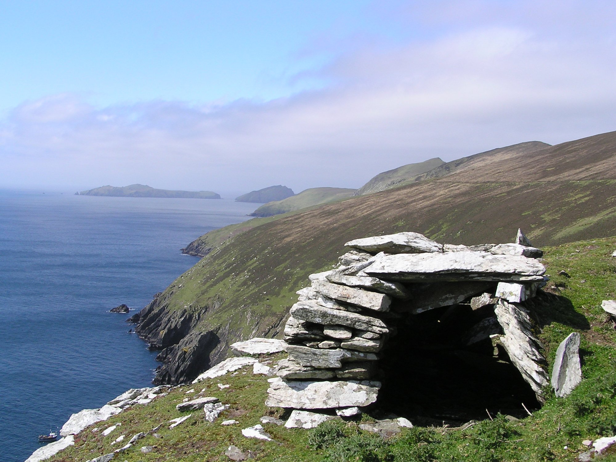 Go to Dún Chaoin in Country Kerry, along the west coast of Ireland. Take the ferry (in summer months only) to An Blascaod Mór, the Great Blasket Island.